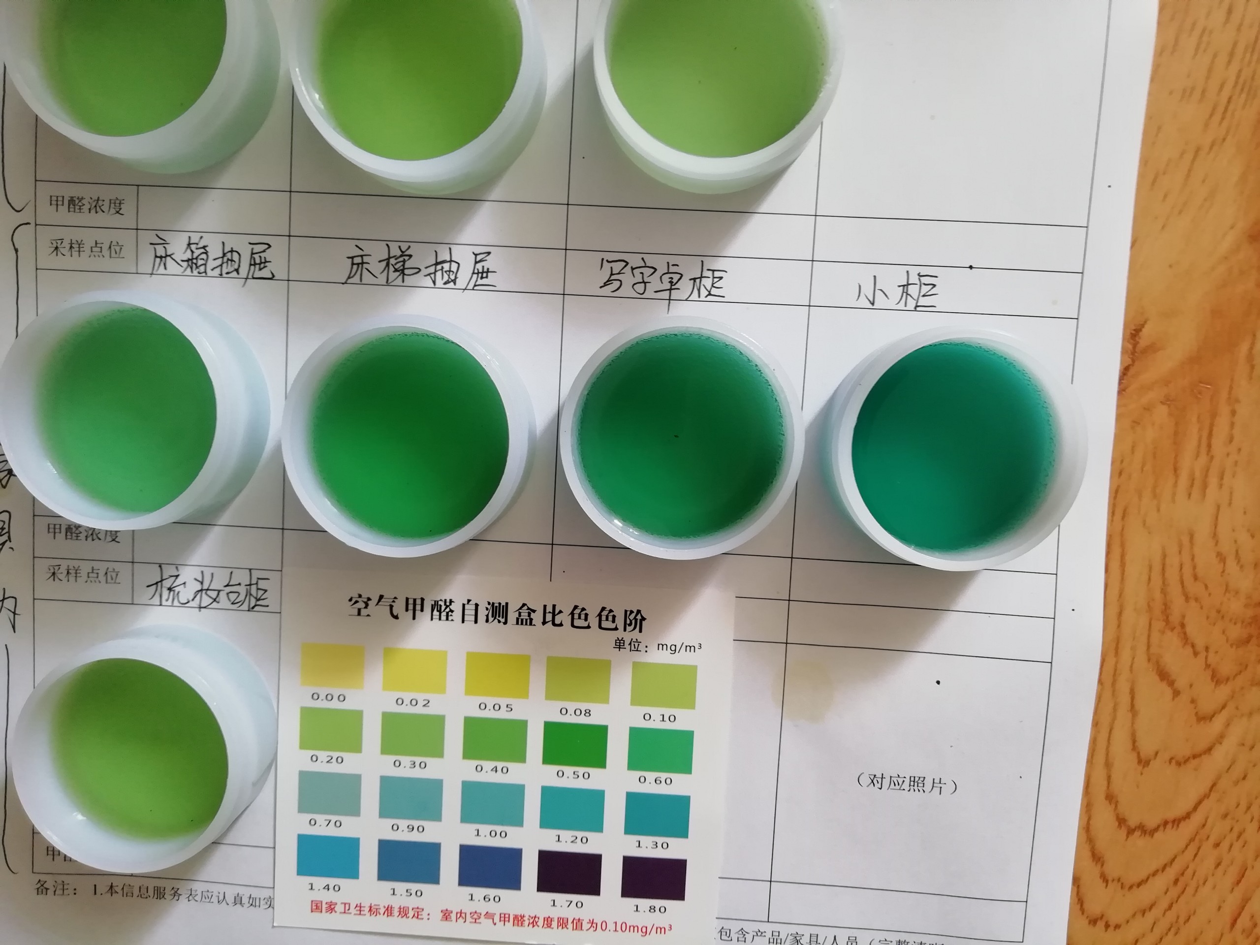 床頭甲醛檢測值高于床尾,床上甲醛濃度重于室內(nèi)。