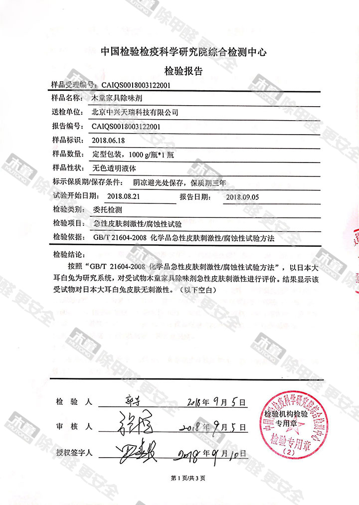 家具除味劑安全性檢測報告