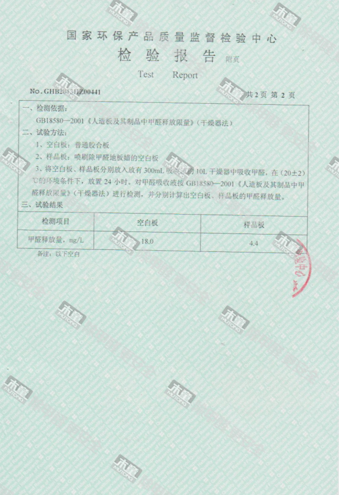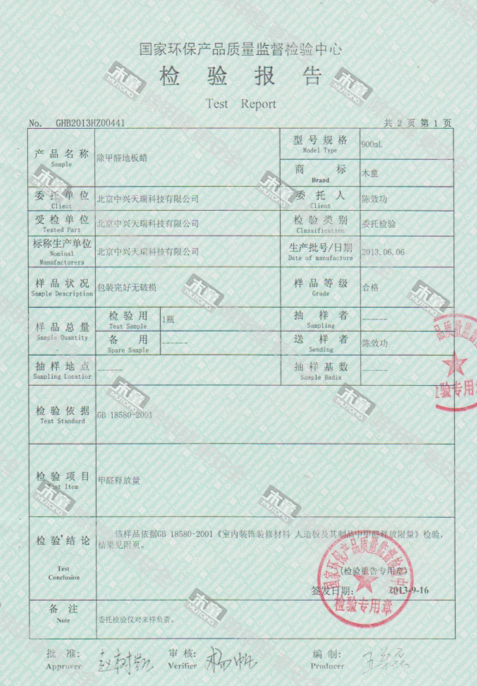 木童除甲醛地板蠟檢測(cè)報(bào)告